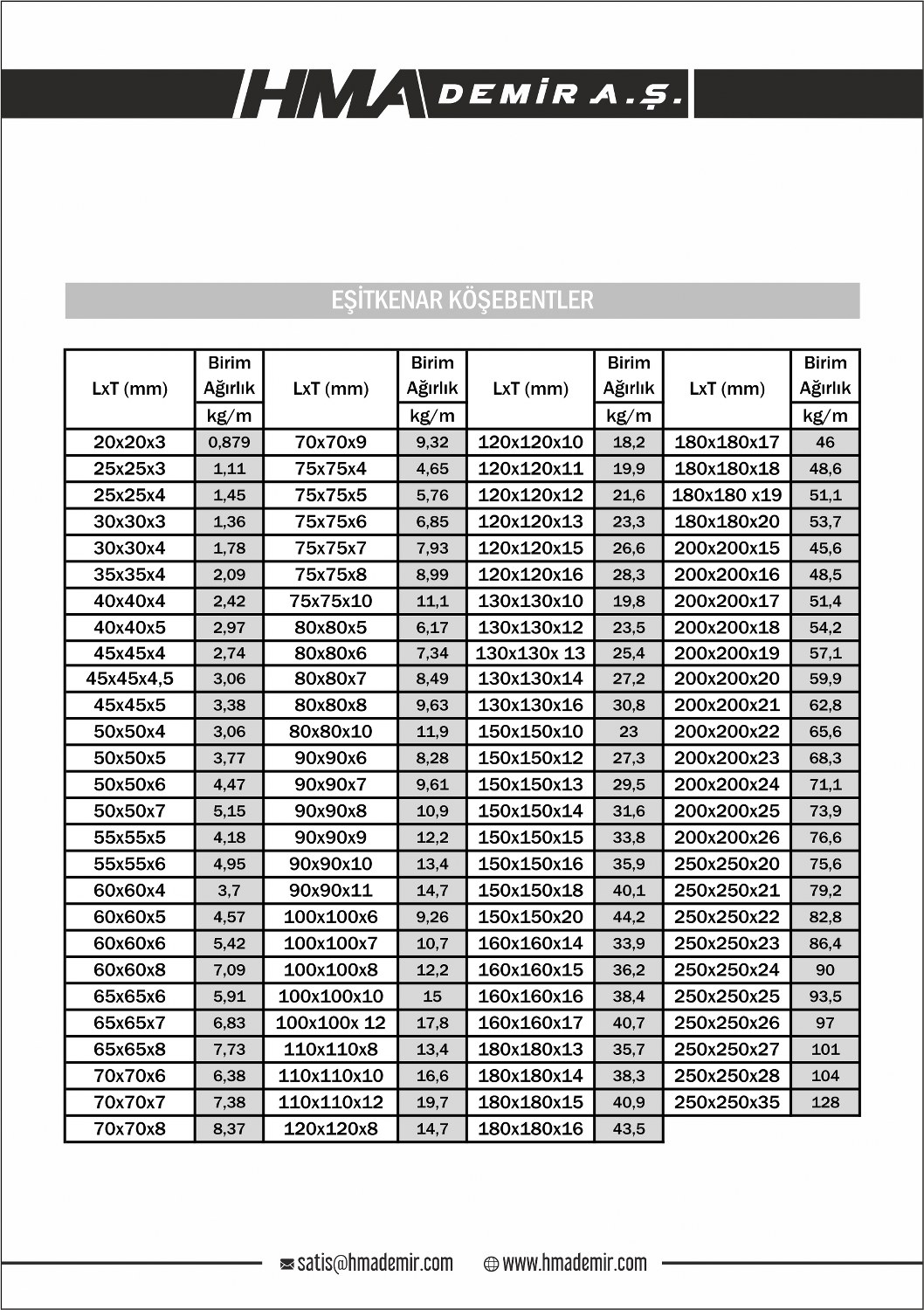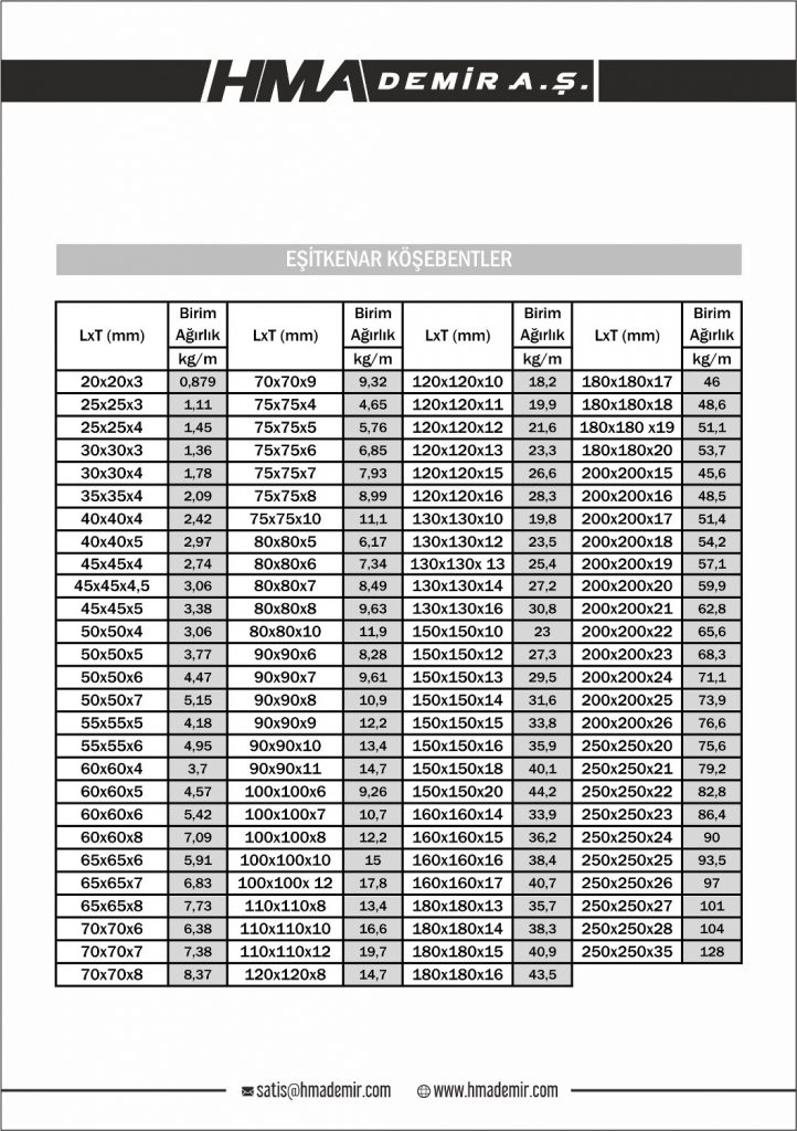 Teklif İsteme: Eşitkenar Köşebentler